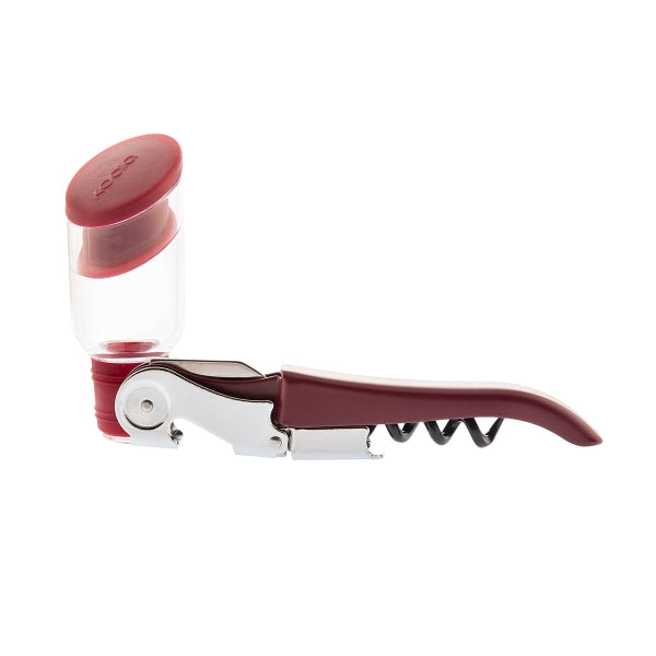 Der mitgelieferte Flaschenöffner mit Hebelmechanismus ermöglicht ein mühelosesEntkorken jeder Weinflasche. Der Folienschneider entfernt die Weinkapsel sauber und schnell. Mit dem praktischen Tropfverschluss können Sie den Wein nach dem Einschenken wieder verschließen und so das Aroma länger erhalten.