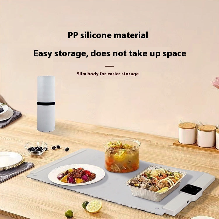 Nie wieder kalte Speisen! Die ultradünne, roll- und faltbare Silikon-Wärmeplatte ist die revolutionäre Lösung, um Ihre Gerichte schnell und gleichmäßig warmzuhalten. Einfach ausrollen, anschließen und genießen – mit 250W Leistung und einer großzügigen Fläche von 660x390mm bleiben Ihre Speisen perfekt temperiert. Platzsparend zu verstauen und aus lebensmittelechtem Silikon gefertigt. Der Genuss warmer Mahlzeiten, jederzeit und überall!